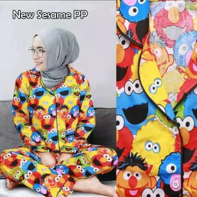 Comfort Cotton Polyester Color. Busy scenes oodles of flaps lots of labels and beloved Sesame Street. Baju Tidur Piyama Import Wanita Korea - ELMO YELLOW.